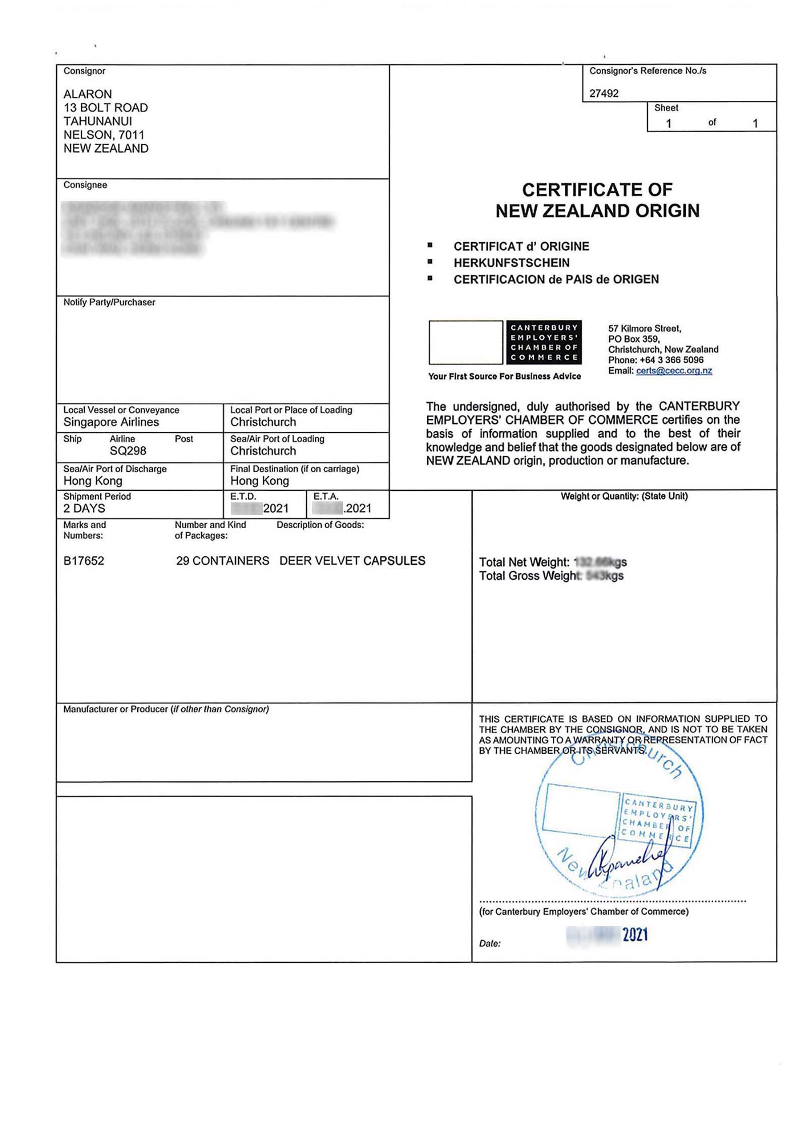CERTIFICATE OF NEW ZEALAND ORIGIN